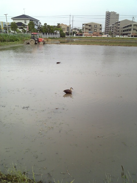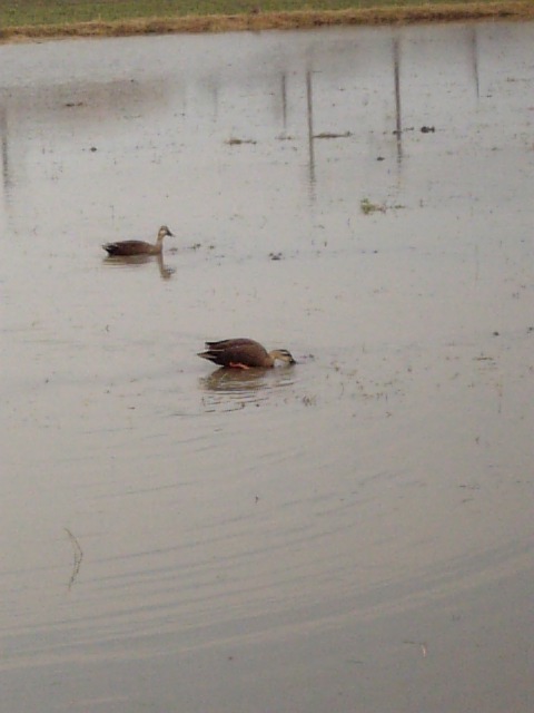 田んぼでカルガモ兄弟(かどうかは知らないが)を発見。