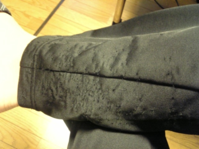 水曜に買ったばかりのジャージが、足の内側のところがすんごいほつれている!!